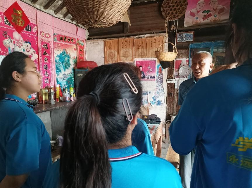 “部队就是一个大熔炉,就跟你们大学一样,天南海北的人聚在一起,讲究的是一个心齐,还有就是不怕吃苦,要学会吃苦在先,享受在后”,说这句话的是当地有着多年从军经历的老战士。老前辈虽年事已高,接受采访时仍精神矍铄地用流利的普通话向成员们讲述他参军入党,多年跟随部队作战的经历。采访过程中,前辈热情地给成员们看他当年的旧照片和保存下来的一些老物件,成员们对当年历史的了解大多是从书本和影视作品中获得的,因此在采访时都显得十分好奇,前辈也很热情和耐心地一一解惑。老人家思路清晰,讲得认真,成员们也听得专心而投入。