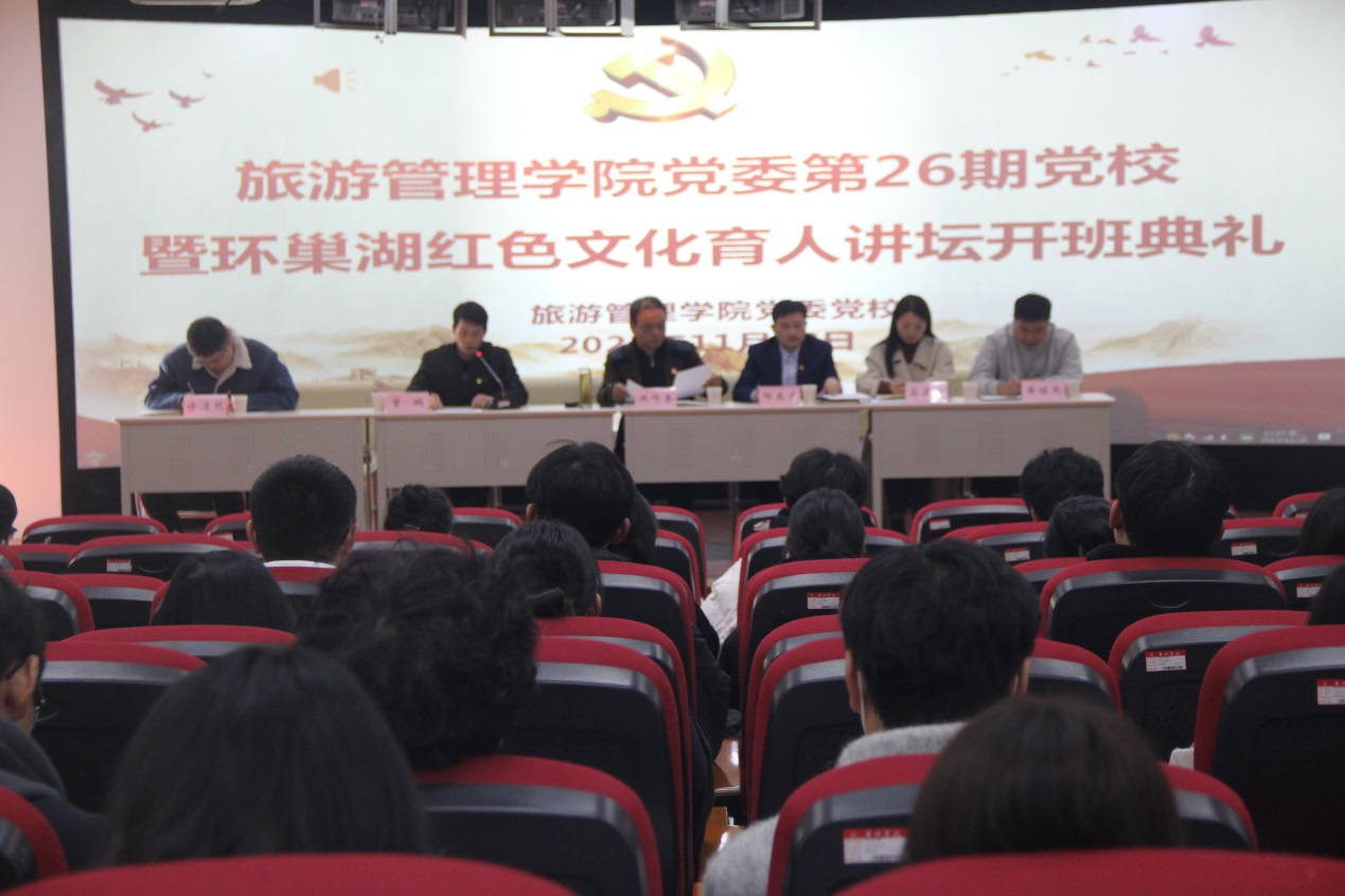 11月28日,旅游管理学院党委第26期党校暨环巢湖红色文化育人讲坛隆重开班。学院党委书记洪作奎、党委副书记、纪委书记邓其志、学生支部书记马其霞、黄维兵、团委副书记徐浩然出席典礼,发展对象和入党积极分子参加开班仪式。开班典礼由党校班主任曾鹏主持。