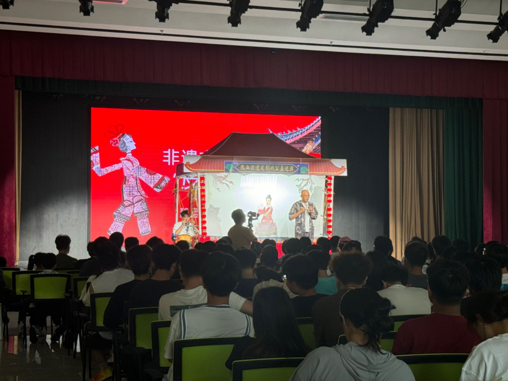 皮影戏是人类非物质文化遗产代表作名录,也是中国民间古老的传统艺术。旅游管理学院结合非遗文化节活动,邀请了马派皮影戏传承人马飞团队来校进行皮影戏表演。在活动现场,马派皮影的第三代传人马飞为师生详细介绍了皮影戏的起源和马派皮影戏的发展情况。