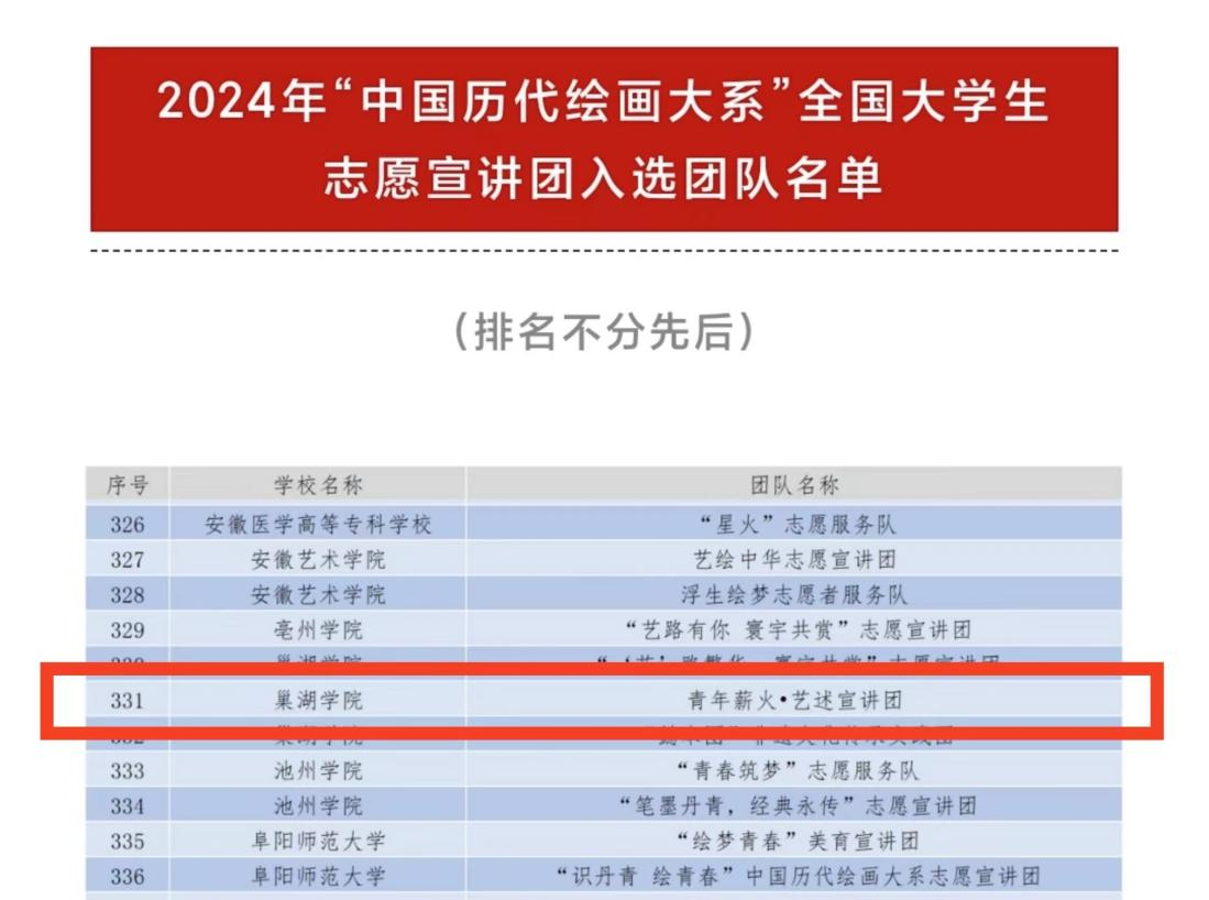 近日,由团中央青年志愿者行动指导中心、教育部中外语言交流合作中心、中国外文局文化传播中心、浙江大学、中国文物报联合发布了《关于遴选2024年“中国历代绘画大系”全国大学生志愿宣讲团的公告》,最终有657所高校的1000支大学生志愿服务团队入选。