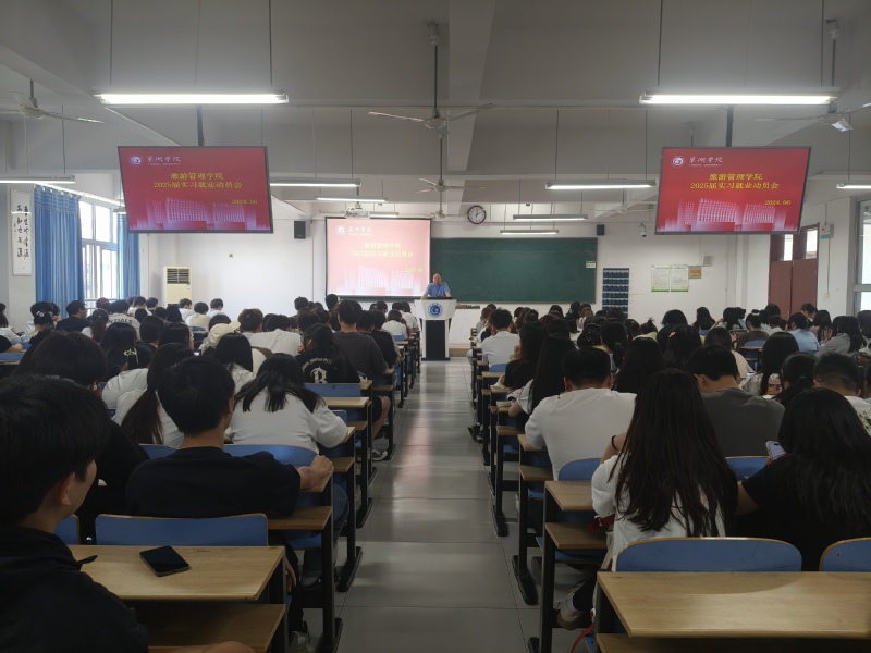 为提前谋划2025届毕业生就业实习工作,切实提高学生专业实践能力,近日,旅游管理学院在慎思楼中401教室召开2025届毕业生实习、就业动员大会。旅游管理学院党委副书记邓其志、副院长朱学同及2021级旅游管理专业、酒店管理专业(含中爱合作班)、会展经济与管理专业全体学生及辅导员参加大会。会议由副院长朱学同主持。