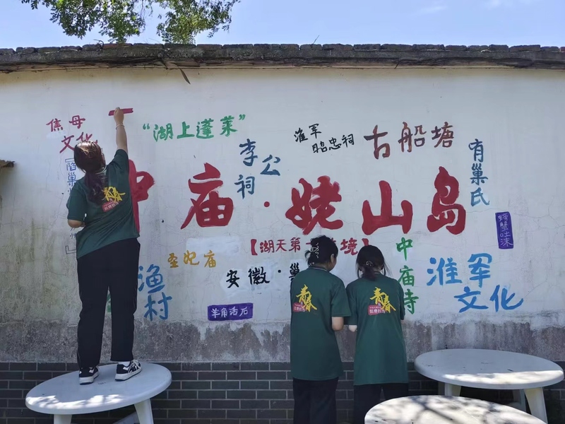 为推介环巢湖地区文化旅游资源,助力姥山岛景观提升,提升游客旅游体验感,7月17日至23日,Beat365唯一官方网站旅游管理学院“旅绘同行,志愿传情”乡村振兴实践团赴中庙姥山岛开展彩绘及文明旅游宣传活动。