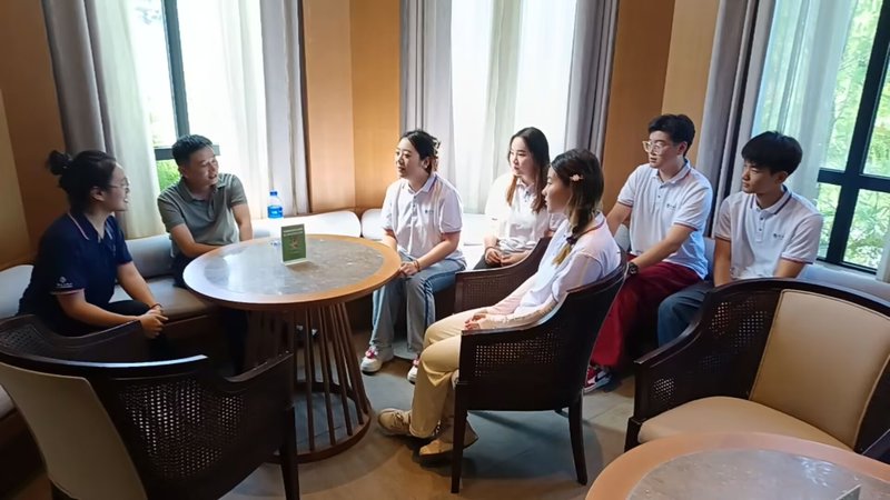 在交流环节,许光林等校友向成员们分享了自己对服务文旅行业看法,实践团队成员就自己感兴趣的问题,纷纷进行提问。“学长,您认为在职场过程中,帮助我们成长最重要因素是什么?”“学姐,目前社会上对在酒店行业就业存在一些信心不足情况,我想了解您所在酒店的工资待遇情况和晋升发展情况”。针对队员们的提问,校友们真诚地谈了自己看法,鼓励大家要坚定信心,做好职业规划,找准自己的职业定位。