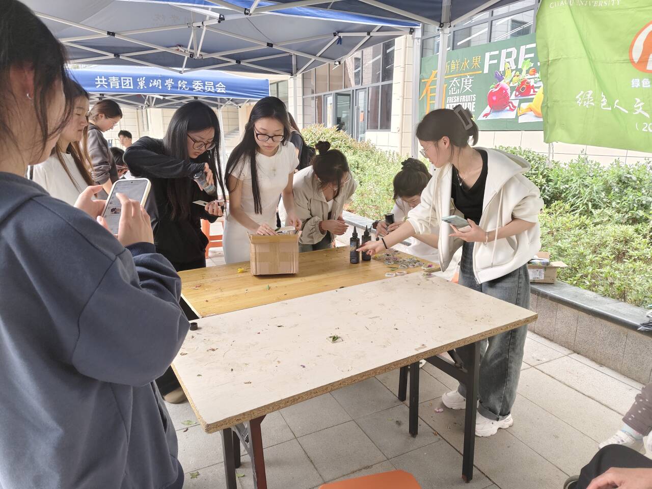 为让广大学生体验自然之美,了解和学习植物拓染的技术和工艺,体验植物艺术的魅力,倡导绿色环保的生活理念。4月8日,环巢湖文化与经济社会发展研究中心非物质文化遗产保护协会与绿色人文环保协会在大学生活动中心广场举办了点“滴”物语,“拓”叶生花活动,现场400余人参与活动。