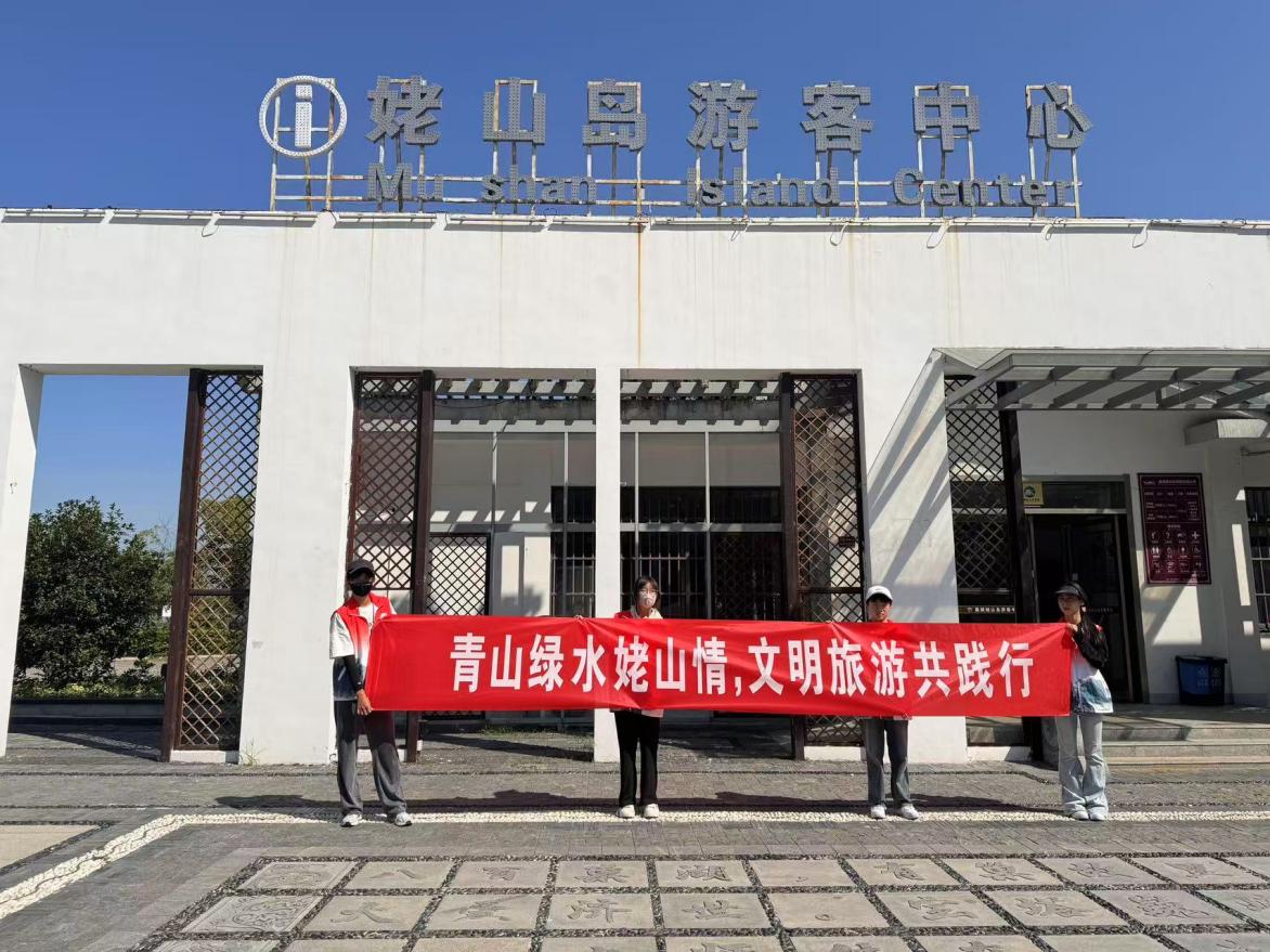 国家4A级旅游景区姥山岛以其秀美的湖岛风光和千年文峰塔等人文胜迹闻名遐迩。为守护这片生态与人文资源,团队成员进行文明旅游宣讲,倡导"垃圾不落地、古迹不涂画、花木不攀折"的文明准则,并邀请游客在文明旅游承诺横幅上签字。同时开展净滩行动,对游客中心、环湖步道等重点区域进行垃圾清理,有效维护了景区环境卫生,保护了自然生态,提升了游客环保意识。
