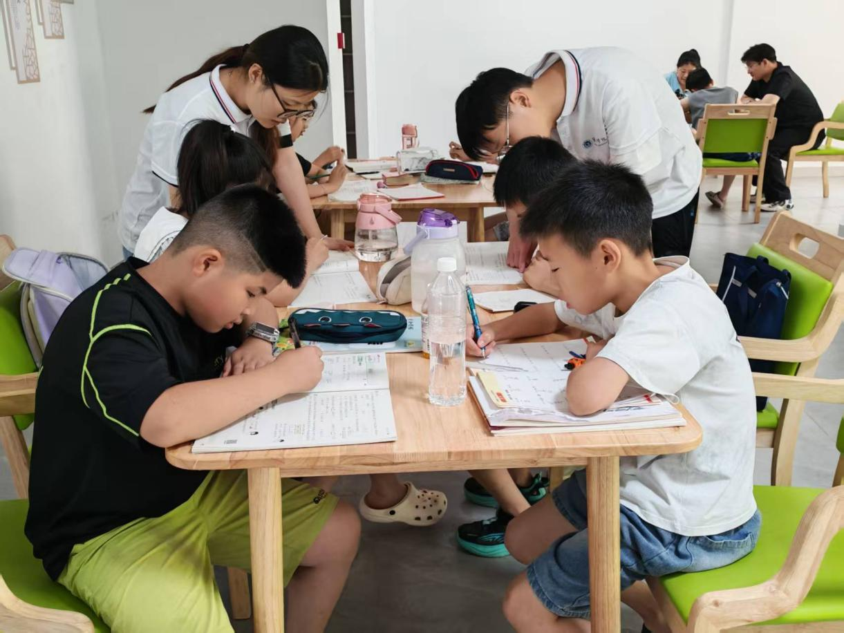活动筹备阶段,该支教团8名队员便深入香格里拉小区,向居民发放兴趣调查问卷,全面了解社区儿童的学习基础、兴趣方向及家长需求。基于的调研数据,团队构建了“基础学科夯实+兴趣拓展提升”双轨并行的课程体系。面对孩子们学业水平参差不齐的情况,队员们主动利用午休等碎片化时间,为需要额外帮助的孩子提供“一对一”或小组辅导。志愿者戴紫莹表示:“看到有孩子因为搞懂了一道题而眼睛发亮,就是我们最大的动力。” 同时,团队创新性地建立了家长微信群,每日及时分享课堂重点、孩子的学习进展与积极表现,有效搭建起家校沟通桥梁,获得了家长的普遍好评。
