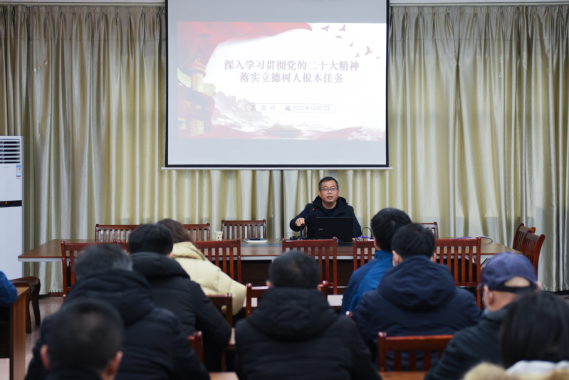 周祥以《深入学习贯彻党的二十大精神落实立德树人根本任务》为题,深入阐述了党的二十大召开的重大意义,全面详实地解读了党的二十大报告的丰富内涵,明确了结合学院实际贯彻落实党的二十大精神的具体任务。