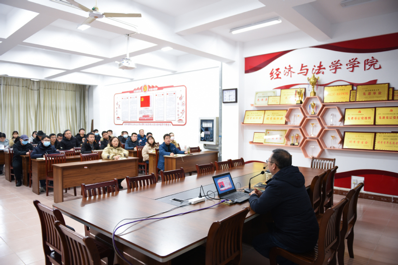 12月7日下午,党委委员、副校长周祥到经济与法学学院专题宣讲党的二十大精神。经济与法学学院全体教职工参加了宣讲会。