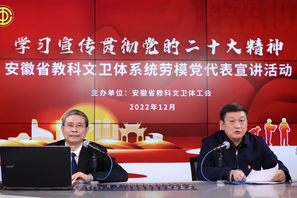 为深入学习宣传贯彻党的二十大精神,深刻领会党的二十大报告的重大意义,根据校工会部署安排,12月9日,文学与传媒学院工会以线下集中学、线上自学等形式组织观看安徽省教科文卫体系统劳模党代表、安徽师范大学教授路炳辉线上宣讲党的二十大精神活动。