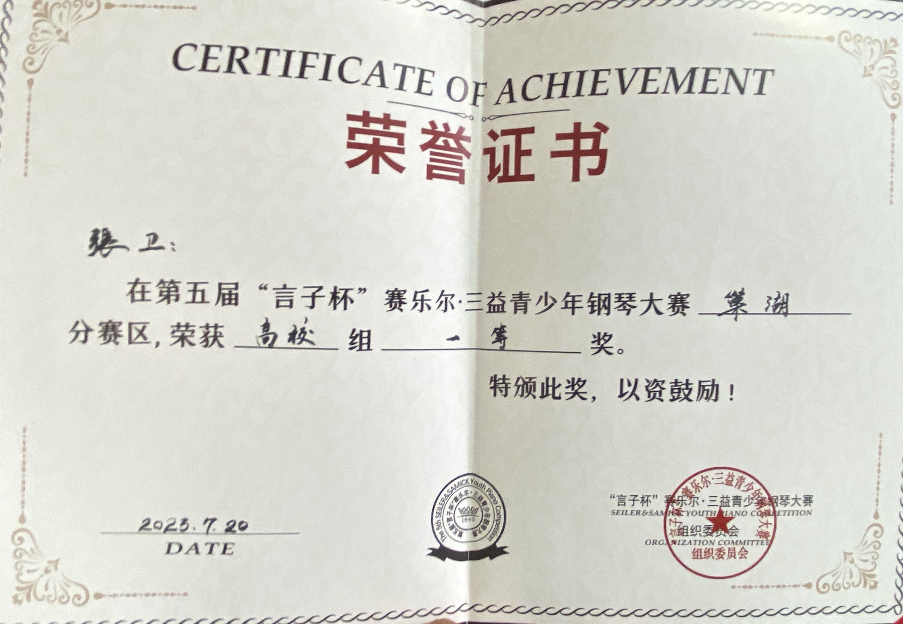 但紧接着,张卫的生活就被各种各样的赛事充斥了。“我因缺少表演经验。选择去参加各类比赛也是一种给自己施压,想让自己进步更快的方法。后面的比赛时间很紧凑,准备工作都被挤压在同一时间段,但是难度都很高。每个比赛又有不同的要求,曲风完全不一样。我就把自己关在小小的琴房里,没日没夜地练。”黑夜往往在将要迎来黎明的时候最为黑暗,高强度的训练差点压倒张卫,但是他不放弃、不气馁,一边调整状态一边继续练习。笔者不禁好奇张卫是如何调控自己有限的精力,去进行这么高强度的练习?对此,张卫微笑着说出了他的见解。“练琴很讲究效率,有时候光靠一味锻炼出来的肌肉记忆是不可取的。和老师交流,跟在老师的引导后自己去摸索、实施好的学习方式。当掌握好属于自己的方法时,多么高难度、多么复杂的曲子最后都可以轻松记住。”由这一点,可见张卫学习之主动、复盘之透彻、训练之有素。