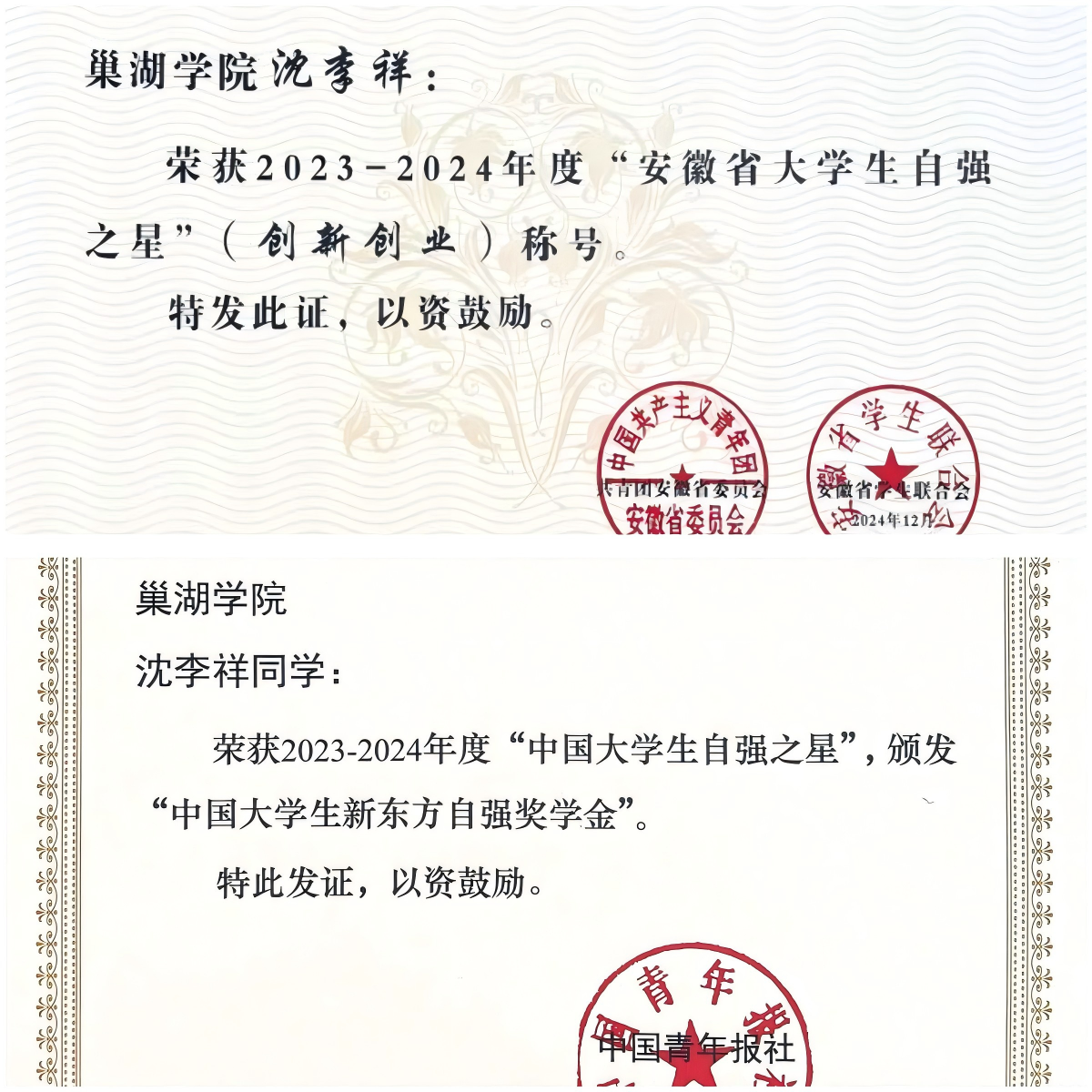 “青年者,人生之王,人生之春,人生之华也。”沈李祥在青春的赛道上奋力奔跑。这份青春答卷,镌刻着个人成长的坚实足迹。面向未来,她必将以更加坚定的步伐,书写属于新时代青年的壮丽篇章。(文/方晶晶 图/胡馨悦 沈李祥 视频/何子豪 汪亚 初审/郭超 终审/张连福 发布/樊振华)