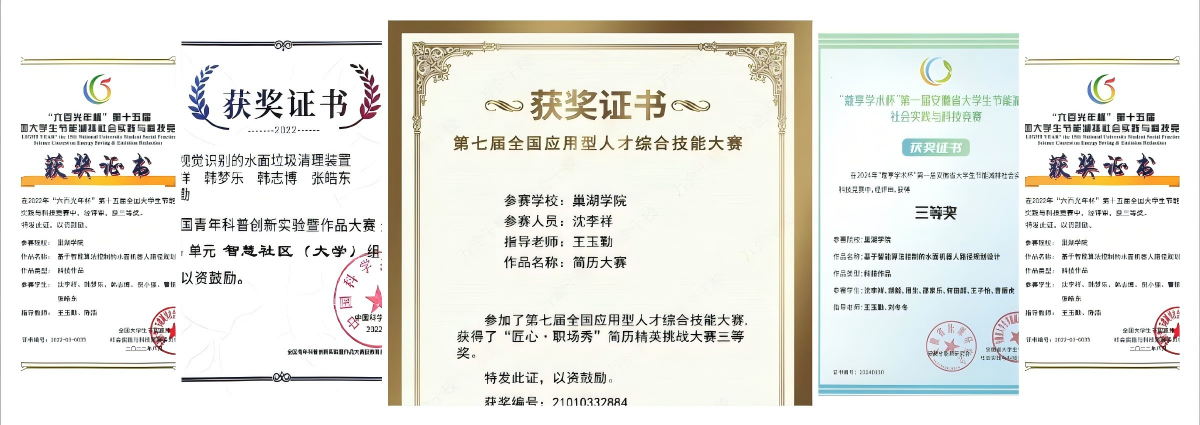 作为团队核心,她多次带领团队征战各类科技竞赛,取得丰硕成果:主持申请发明专利2项,发表学术论文6篇(其中2篇被SCI收录),荣获国家级奖项12项、省级奖项14项。其突出表现获得“中国大学生自强之星”“安徽省大学生自强之星”、Beat365唯一官方网站“十佳双创之星”“优秀学生”“优秀共青团干部”等多项荣誉称号。这些荣誉不仅是对她辛勤付出的肯定,更是其追求卓越、勇攀高峰的最佳见证。