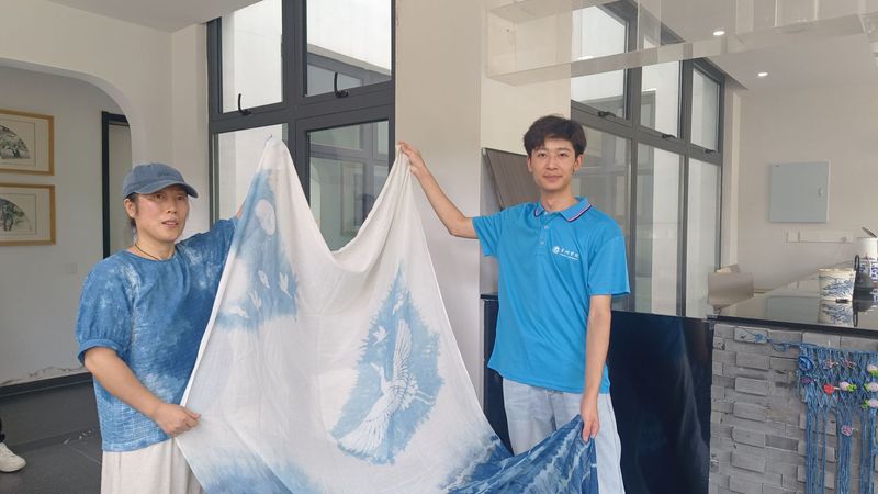 在“圩壹·森境”体验基地,实践团队与非遗传承人共同创作具有现代审美的蓝染作品并学习剪纸技艺。通过亲身体验传统技艺,实践团成员认识到传统工艺需要当代表达,蓝染不仅是技艺,更是一种生活美学的传承,通过设计赋能,这些古老技艺可以在都市市场找到新空间。