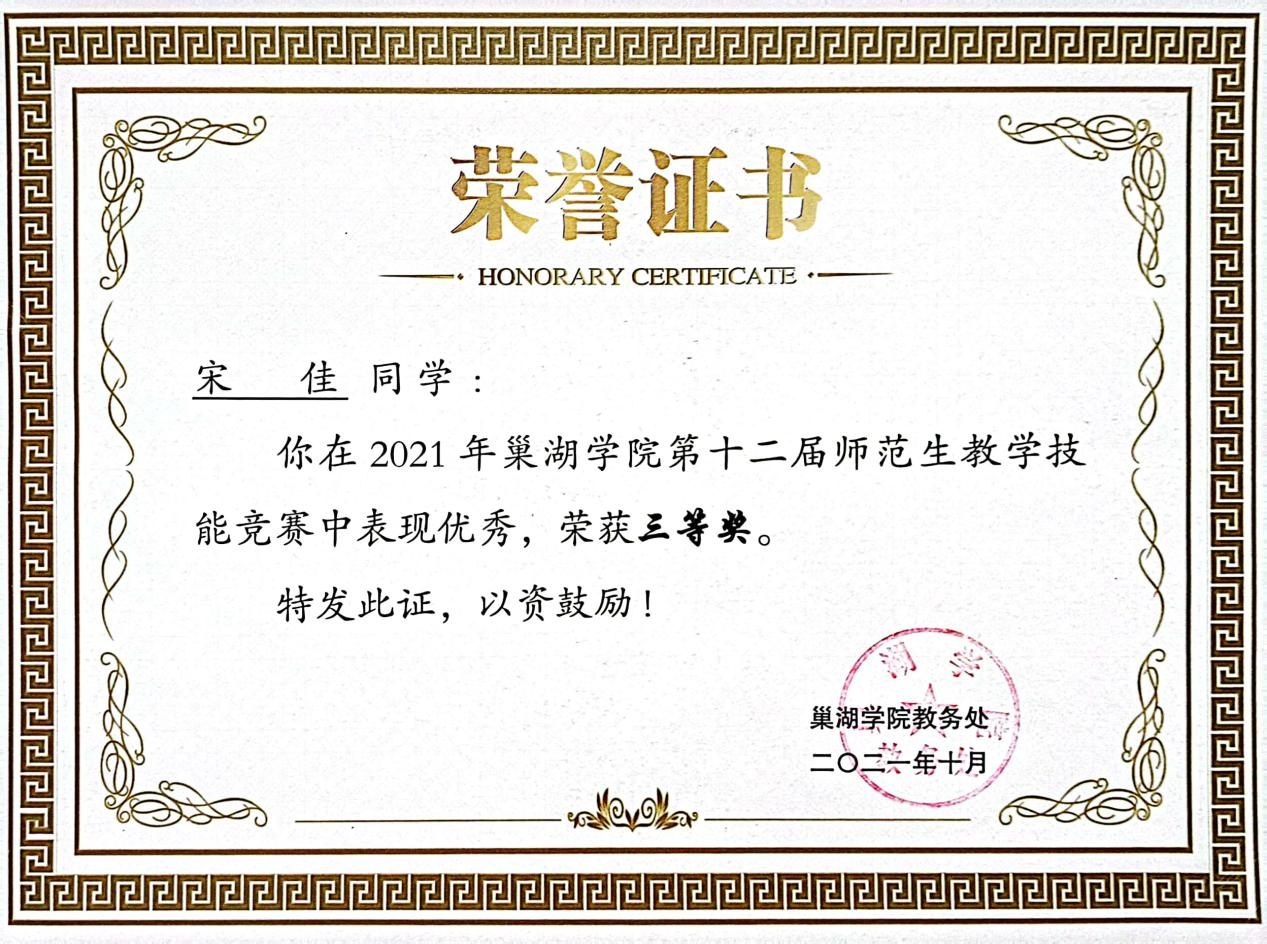 有些选择,注定与自己的生命轨迹息息相关。一个有闪光点的想法的出现,远远不及一份长时间地坚守。尽管遇见许多次机会,可以选择十字路口的另一条路,可这枚初心,已经在她的心里生长得挺拔如树。在谈及她选择此专业的原因时,宋佳说:“我深受老师们的影响,十几年来的耳濡目染让我更加了解教师这个职业,而且这个职业很适合我。在教师这个岗位上发光发热,看着一届又一届的小朋友毕业,对我来说是一件很幸福的事情。”很幸运,宋佳如愿被学前教育专业录取,进入大学后,宋佳更加坚定了自己的想法。在专业测评中,她连续三年始终保持着智育和综合评测班级前二的优异成绩。她说:“大学时光是宝贵的,坚持自己的想法才能够不被环境所影响。有时候一个人的时光是孤独的,但也是充实的,大学三年的不断努力才能够让我的羽翼不断丰满,让我积蓄力量去实现多年来的梦想。”只有用水将心上的雾气淘洗干净,荣光才会照亮最初的梦想。