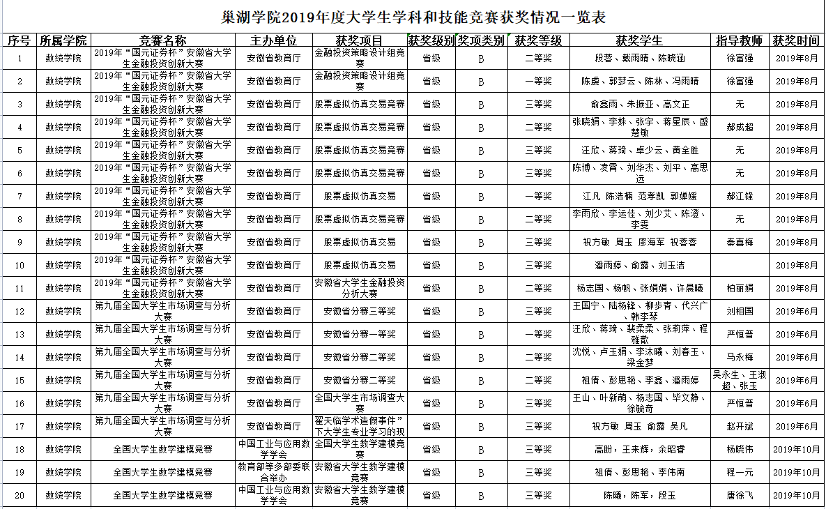 数学与统计学院2019年度大学生学科和技能竞赛获奖情况一览表