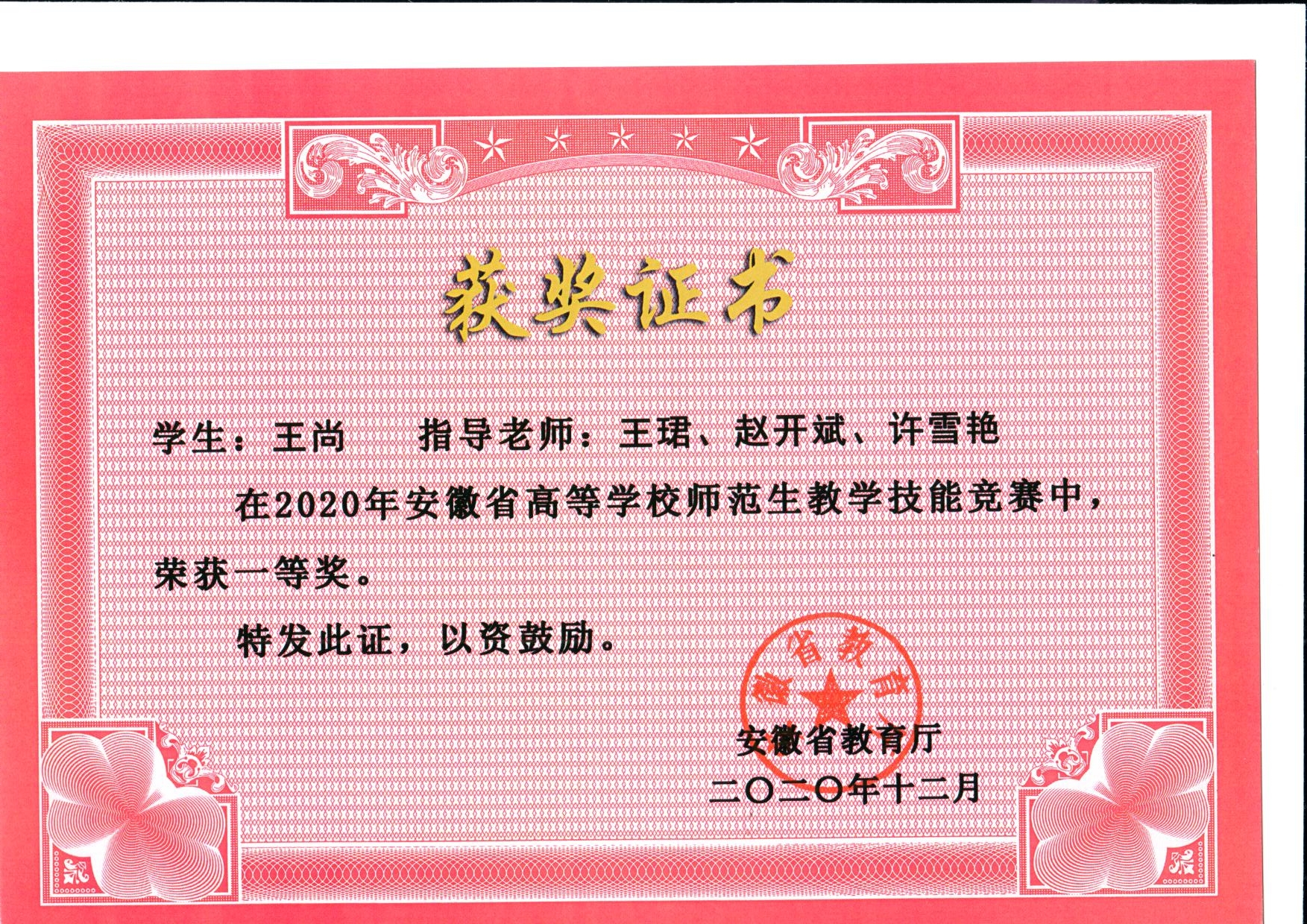 师范生技能竞赛 省一