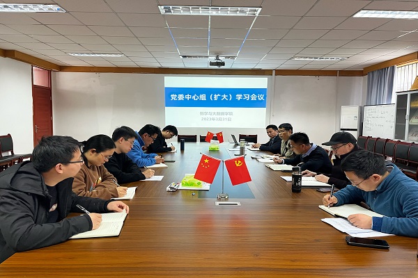 3月31日上午,数学与大数据学院于笃行楼会议室召开党委中心组(扩大)学习会议,集体学习“两会”专题、《复兴文库》序言及《中国共产党统一战线工作条例》,并围绕学习内容进行研讨。会议由学院党委书记史国东主持,领导班子、党委委员、党支部书记及教研室主任参会学习。