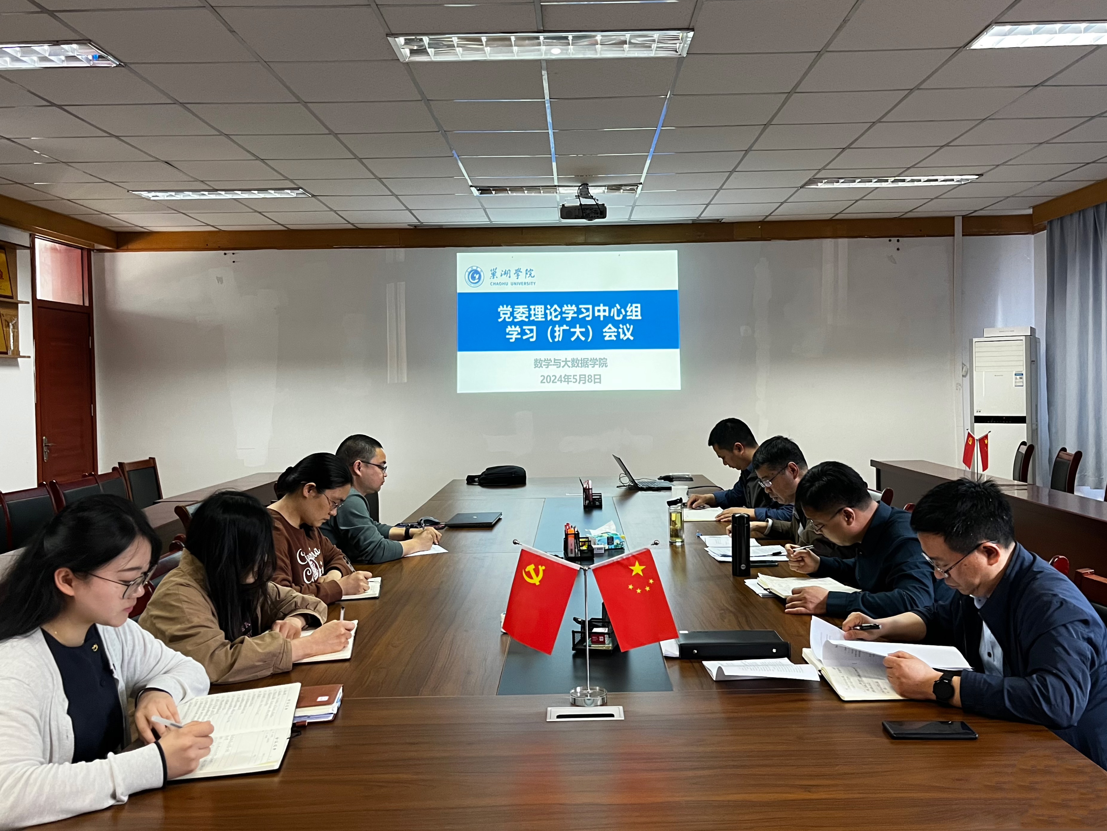 5月8日下午,数学与大数据学院在笃行楼203会议室召开第五次党委理论学习中心组学习(扩大)会议,根据中央、省委及学校党委要求,围绕习近平总书记关于党的纪律建设的重要论述,扎实推动党纪学习教育入脑入心走深走实。会议由学院党委书记史国东主持,学院班子成员、党委委员、支部书记和科级干部参加会议。