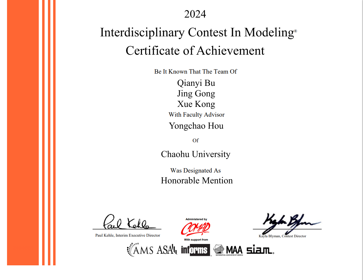 2024美国大学生数学建模竞赛国际二等奖