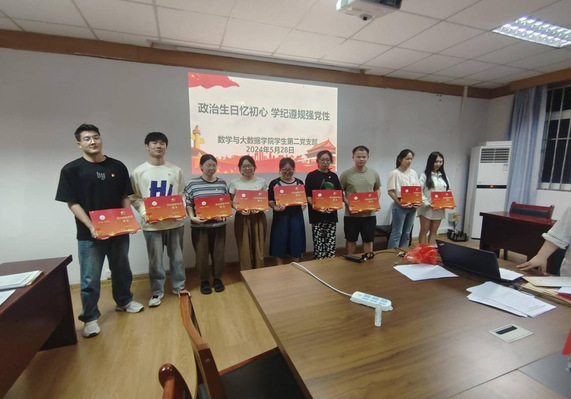 为重温入党誓词、回顾入党初心,数学与大数据学院学生第二党支部于5月28日于笃行楼会议室开展“政治生日忆初心,学纪遵规强党性”主题活动。活动由党支部书记谢乙莹主持,党支部全体党员参加。