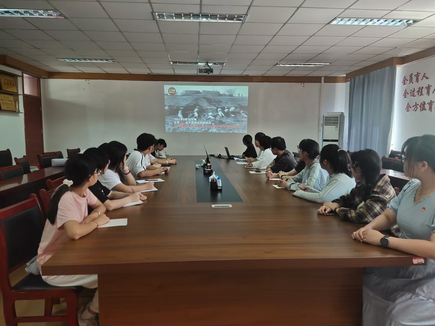 活动伊始,邵洪以沉痛而坚定的语调,引领全体成员共同回顾了“九一八”事变的悲惨历史。她通过生动的讲述,结合观看红色记忆纪录片《揭秘“九一八”事变真相》,深刻感受到国家遭受的屈辱与苦难。纪录片中的史料和珍贵的影像资料,让大家对“九一八”事变的起因、经过及影响有了更加全面而深刻的认识。