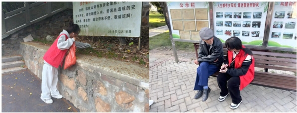 志愿服务活动中,各小组积极组织开展各项志愿活动,或服务校园,或服务社区街道,在服务与奉献中增强社会责任感和使命感,以实际行动践行党的全心全意为人民服务宗旨。