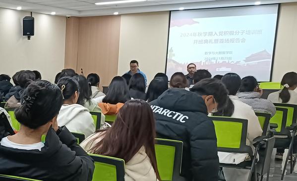 为进一步加强对入党积极分子的教育培训,全面提升入党积极分子的综合素质,严把党员发展入口关,不断充实党员队伍后备力量。2024年11月25日至12月2日,数学与大数据学院在大学生活动中心举办2024秋季入党积极分子培训班。数学与大数据学院党委副书记(主持工作)陈小波、培训班班主任管成功出席开班仪式。
