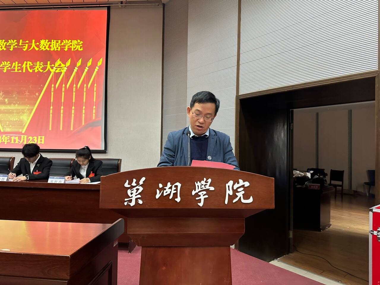 冀祥麟做总结讲话。他代表学院团委对这次大会取得圆满成功,对新当选的数学与大数据学院学生委员会委员、主席团成员,校学代会代表表示最热烈的祝贺,向全体代表和工作人员表示崇高的敬意。他就如何进一步做好全院学生会工作,提三点要求:一是旗帜鲜明讲政治;二是担当作为谱新篇;三是转变作风树形象。
