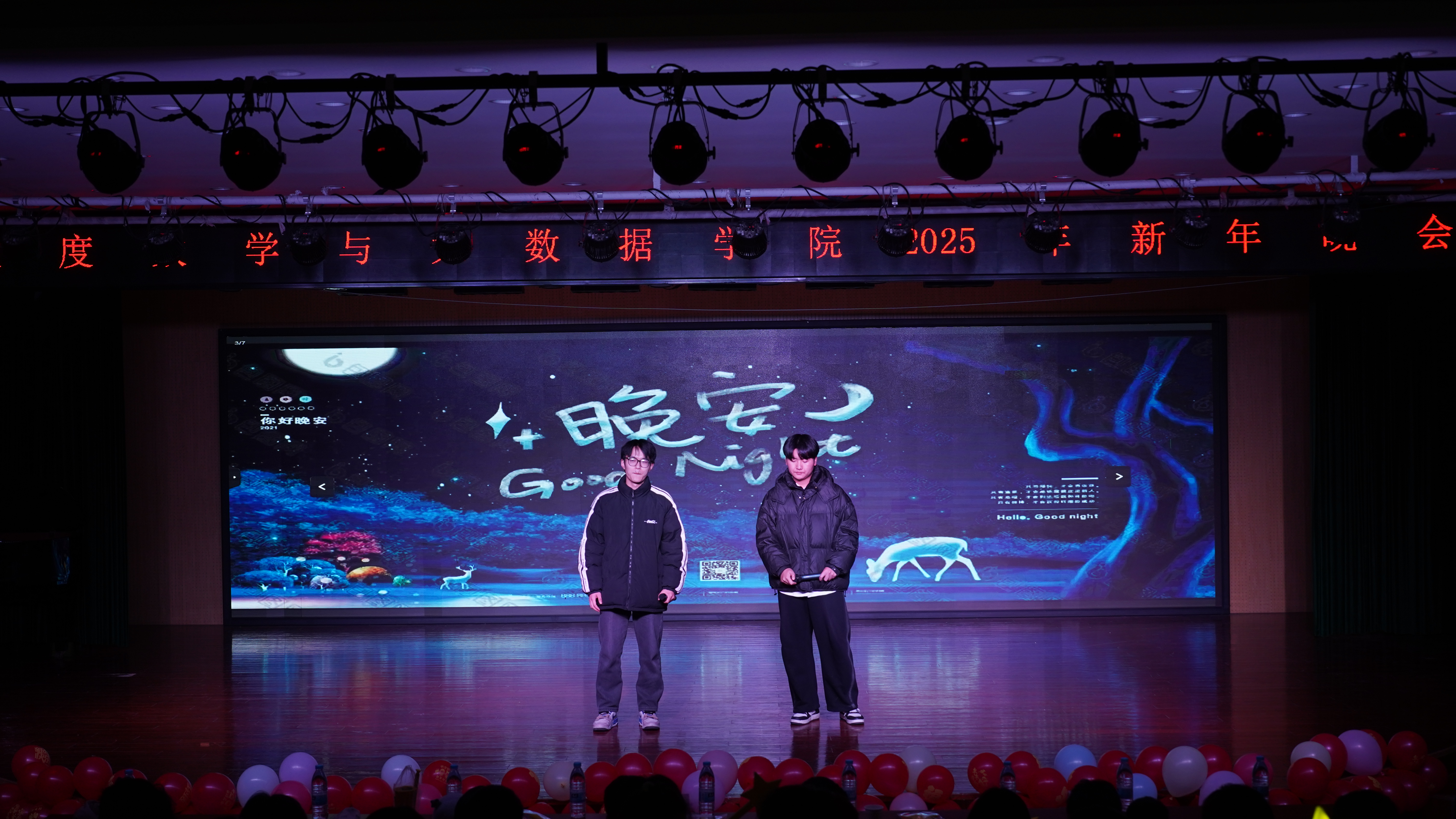 时序更迭,新元肇启。12月29日晚,数学与大数据学院在艺术楼报告厅举办“数智新时代 青春共奋进”主题元旦晚会。数学与大数据学院党委副书记(主持工作)陈小波,副书记、纪委书记郝江锋,团委副书记冀祥麟以及部分学院老师出席晚会。
