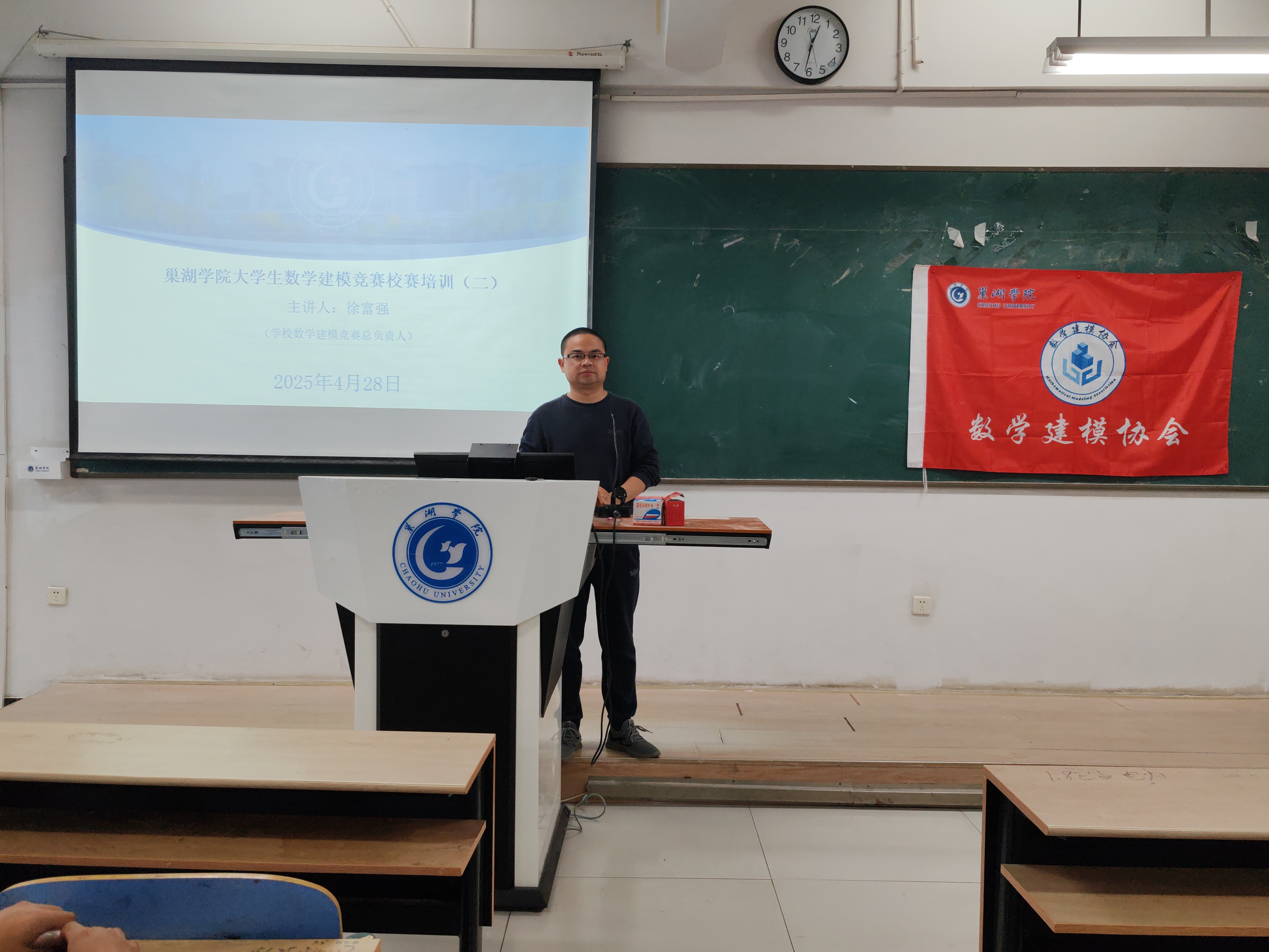 数学建模的征途是一场思维的马拉松,每一次训练都是为冲刺终点积蓄力量。全力冲刺2025年全国大学生数学建模竞赛,数学建模协会于2025年4月28日在慎思楼中201顺利召开校赛第二次培训会。本次培训由指导教师徐富强主持,高年级优秀获奖同学陈婧、毛梓林、秦家怡作为代表分享竞赛经验。