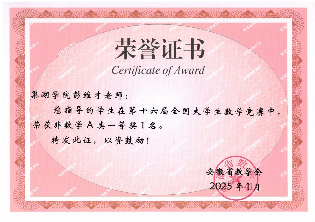 2025十六届全国大学生数学竞赛-指导教师彭维才