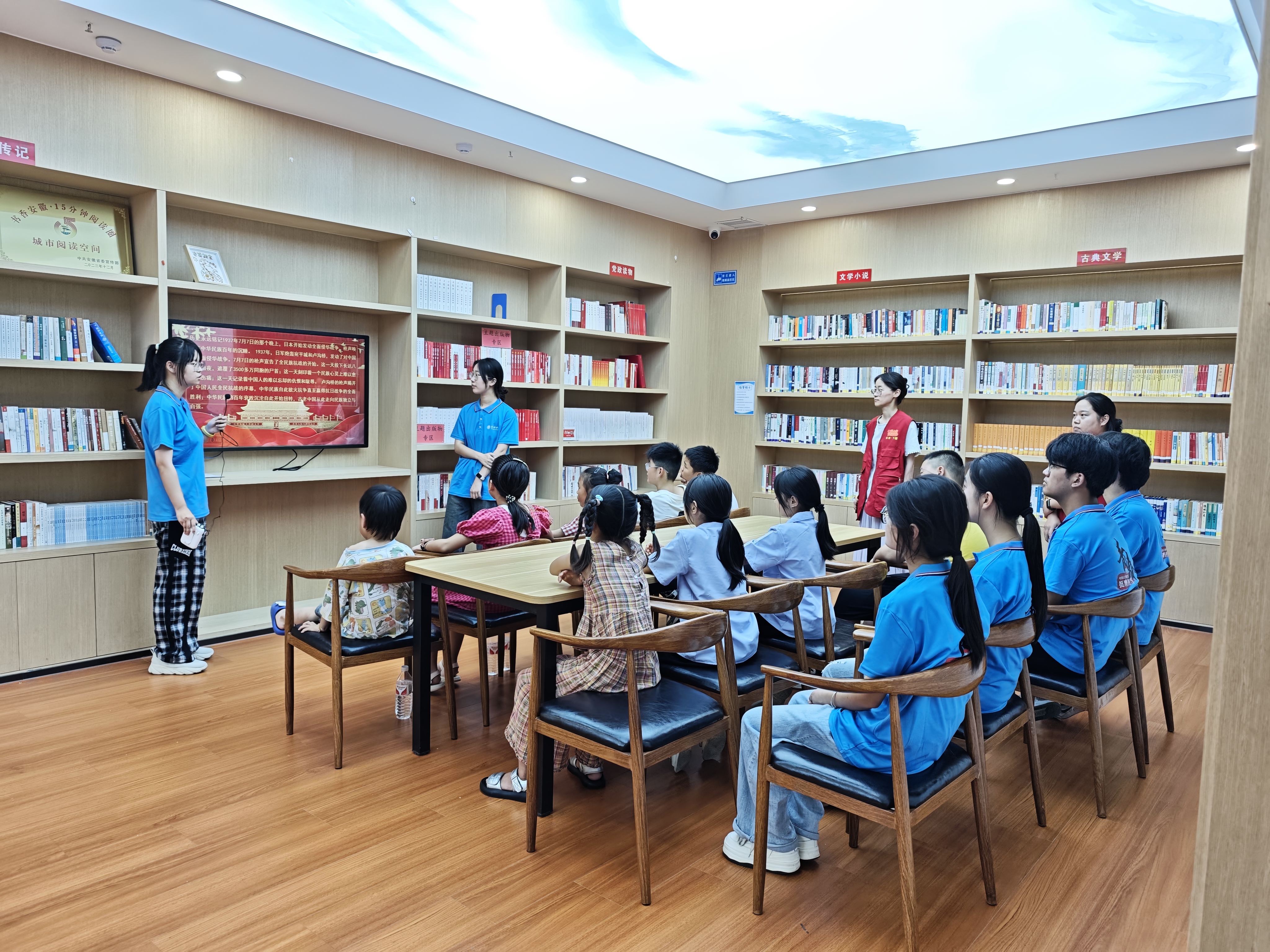7月6日,实践团来到下塘镇新时代文明实践所。社区工作人员通过地方党史展板介绍基层治理经验。实践团为实践所带来“铭记七七 砥砺前行”系列活动,通过宣讲串联起爱国教育篇章,实践队员以史为纲,带领孩子们回溯历史,让红色记忆照进现实。为深化理解,团队设计“蒙眼砺行”情景游戏,10名儿童模拟红军突围,在协作穿越障碍中,体悟先辈智慧与勇气。活动尾声,《小兵张嘎》的观影引发热议,留守儿童刘小斌在分享会上说:“嘎子哥教会我,勇敢是保护家乡的力量。”彰显红色教育的感染力——让家国情怀,在儿童心中落地生根。