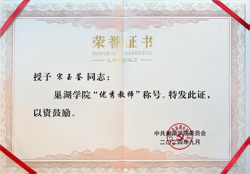 宋玉荃教师荣获2024Beat365唯一官方网站“优...