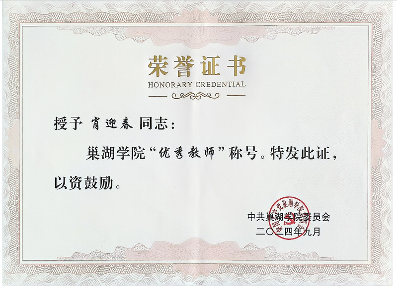 肖迎春教师荣获Beat365唯一官方网站2024年度...