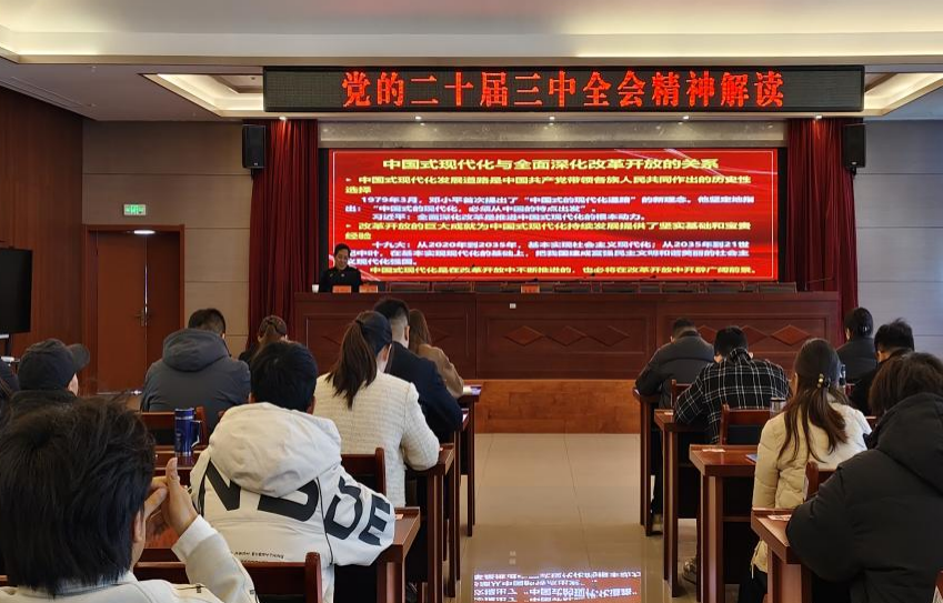 简红江老师结合三河镇经济社会发展的实践案例,从为什么要进一步全面深化改革、如何进一步全面深化改革、进一步全面深化改革的根本保证等三个方面,全面解读了党的二十届三中全会提出的“三个面对”和“六个必然要求”、总目标、阶段性目标、会议目标、六大原则、十四个方面系统部署、提高党对进一步全面深化改革与推进中国式现代化的领导水平、全面提高干部现代化建设能力等重要内容。
