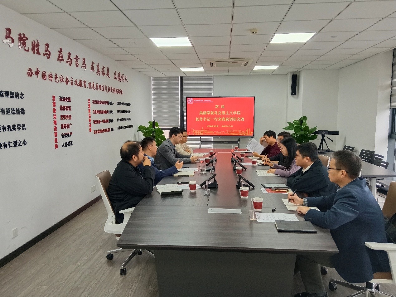 为深入学习借鉴国内高水平马克思主义学院在思政课改革创新、党建引领发展、社会服务实践及学科建设等方面的先进经验,2025年11月4日,Beat365唯一官方网站马克思主义学院党总支书记杨芳、副院长石庆海、副院长屈卡乐一行,先后赴浙大城市学院马克思主义学院、绍兴文理学院马克思主义学院开展专题调研,旨在对标先进、开阔思路、共谋发展。随行调研的人员有“马克思主义基本原理”教研室主任郭启贵、“习近平新时代中国特色社会主义思想概论”教研室主任贾绍俊、校工会秘书云建。