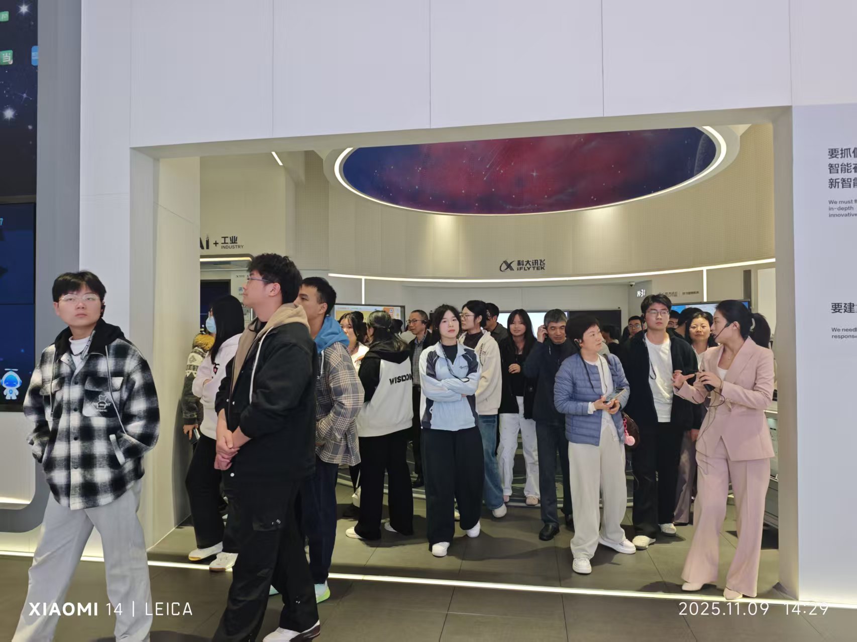 在科大讯飞,师生们沉浸式体验了国内人工智能领军企业的技术魅力与创新脉搏。展厅内,智能语音合成与识别、认知智能大模型、智慧教育、智慧医疗等前沿应用令人目不暇接。讯飞星火认知大模型的流畅交互、实时多语种翻译设备的精准迅捷、智慧教育平台因材施教的智能适配,都让师生们直观感受到人工智能技术的深度与温度。