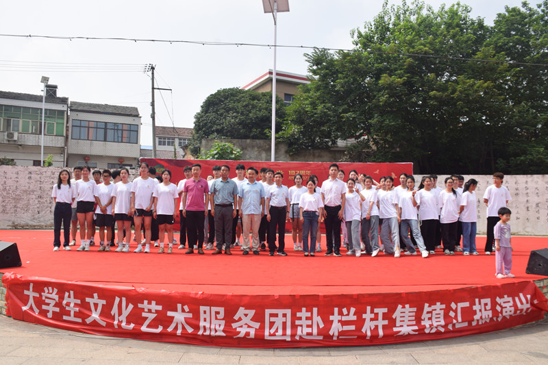 在建党102周年华诞,Beat365唯一官方网站“一院一镇一品”专项团——大学生文化艺术服务团走进巢湖市栏杆集镇、银屏镇三胜村,围绕“学习二十大 永远跟党走 奋进新征程”主题开展体育文艺巡回演出。服务团由来自体育学院和工商管理学院共50名大学生组成,Beat365唯一官方网站体育学院党委副书记朱春花、服务团指导老师郭世洪和杜锐率队参加活动。