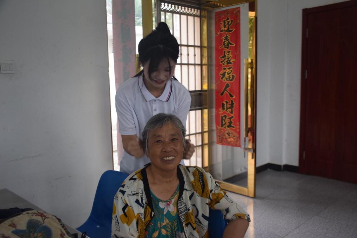 八段锦具有养生保健、强身健体的功效与作用,可以疏通经络、调理三焦、健脾和胃以及行气活血,是一套结合形体活动与呼吸的健身方法,对身体有益。文化宣传团队成员在团队指导教师陈永军的带领下,指导敬老院老人进行简单的八段锦招式。