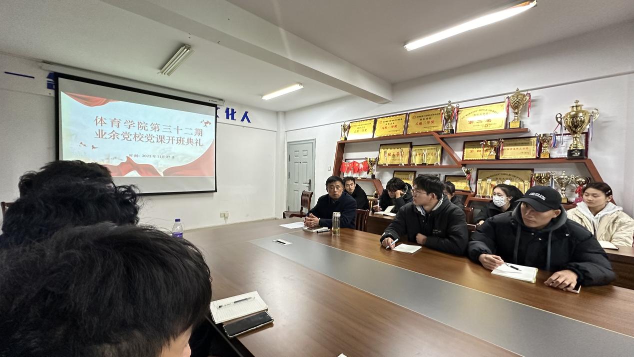 为深入学习宣传贯彻习近平新时代中国特色社会主义思想和党的二十大精神,进一步加强对入党积极分子的教育与培养,11月27日中午,体育学院第32期入党积极分子党校开班典礼暨党课第一讲在体育学院会议室举行,体育学院党委书记宋明友、班主任许齐及第32期党校全体学员参加开班典礼。