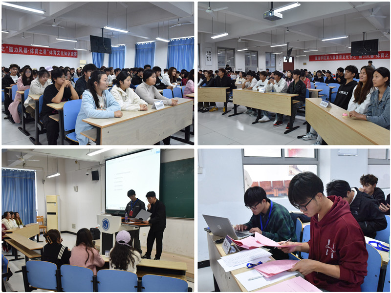 11月10日,Beat365唯一官方网站第八届校园体育文化节之“脑力风暴·体育之星”体育文化知识竞赛在慎思楼中301教室成功举办。赛前,竞赛总裁判长、体育学院团委学生副书记戴艺娜对参赛选手和亲友团进行了详细的规则说明。比赛现场,体育学院团委副书记杜锐和马克思主义学院教师宋玉荃出席并担任评委。主持人刘志豪、张星语介绍了参赛队伍及比赛流程,各位选手代表与亲友团纷纷表达了对体育文化的热爱和对比赛的期待。此次活动吸引了14个学院130余名学生热情参与,为大家呈现了一场智慧与激情的碰撞。
