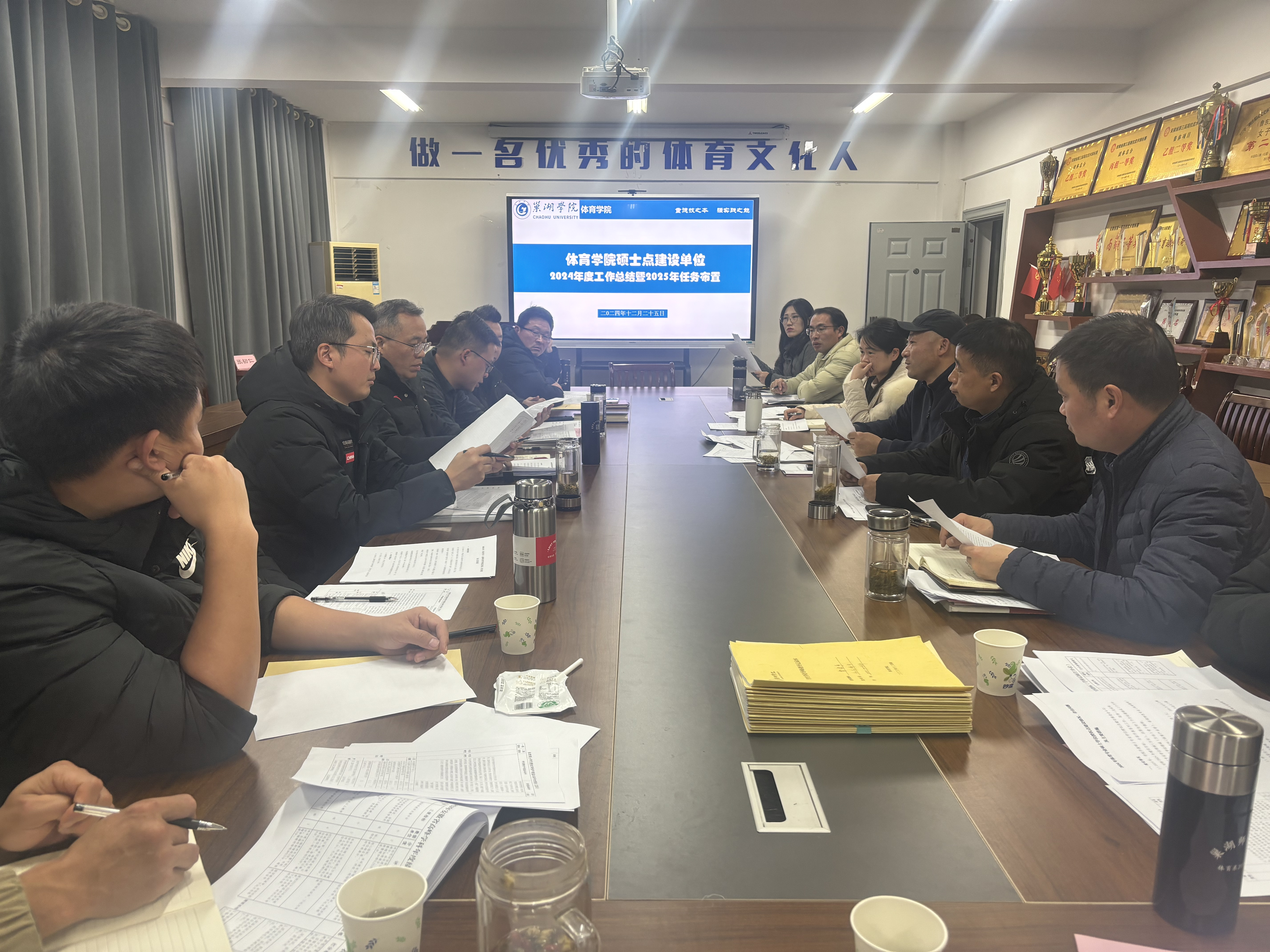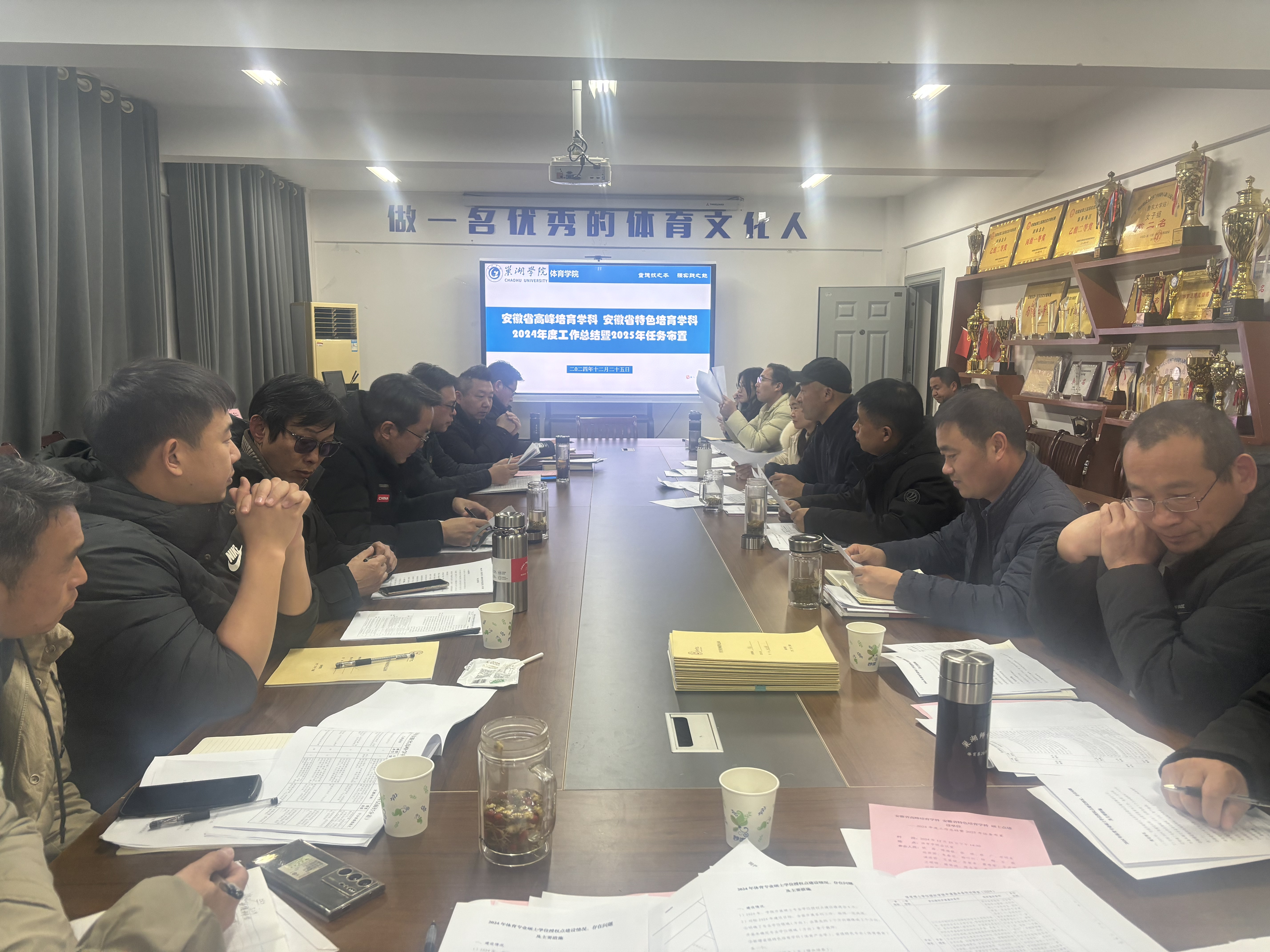 12月25日下午,体育学院在会议室召开安徽省高峰培育学科、安徽省特色培育学科及体育硕士专业学位授权点2024年度工作总结暨2025年任务布置会。科研处处长姚磊、副处长陈海银,体育学院党政班子成员以及体育学科和体育硕士专业学位授权点各方向的教师参加会议,会议由体育学院院长赵胜国主持。