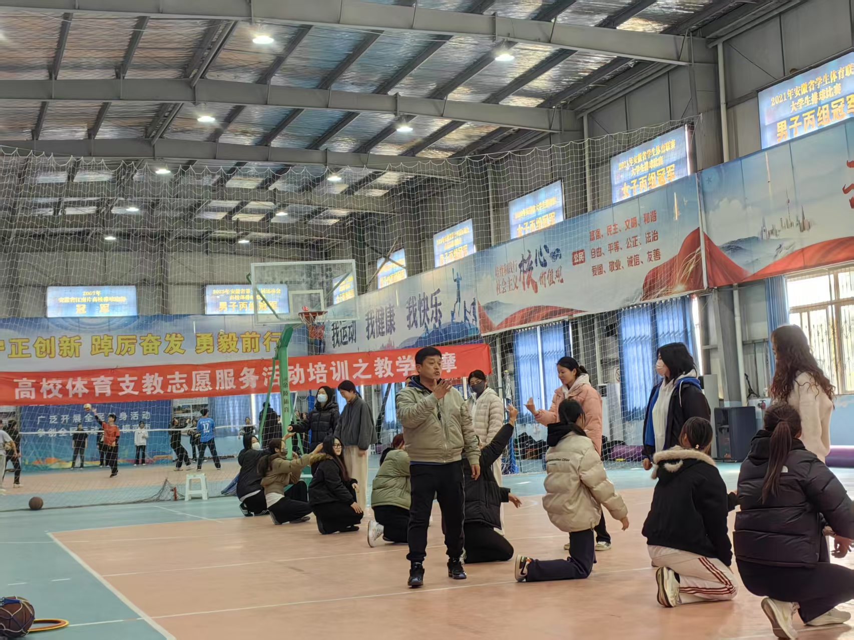 为扎实推进体育支教志愿活动,提升志愿者体育教学和训练能力,为开展好体育教学和训练工作打好基础。体育学院于3月7日上午在风雨操场举办教学和训练技能专题指导活动。本次指导活动邀请巢湖一中刘振宇老师主讲,全体体育支教同学参加本次活动。