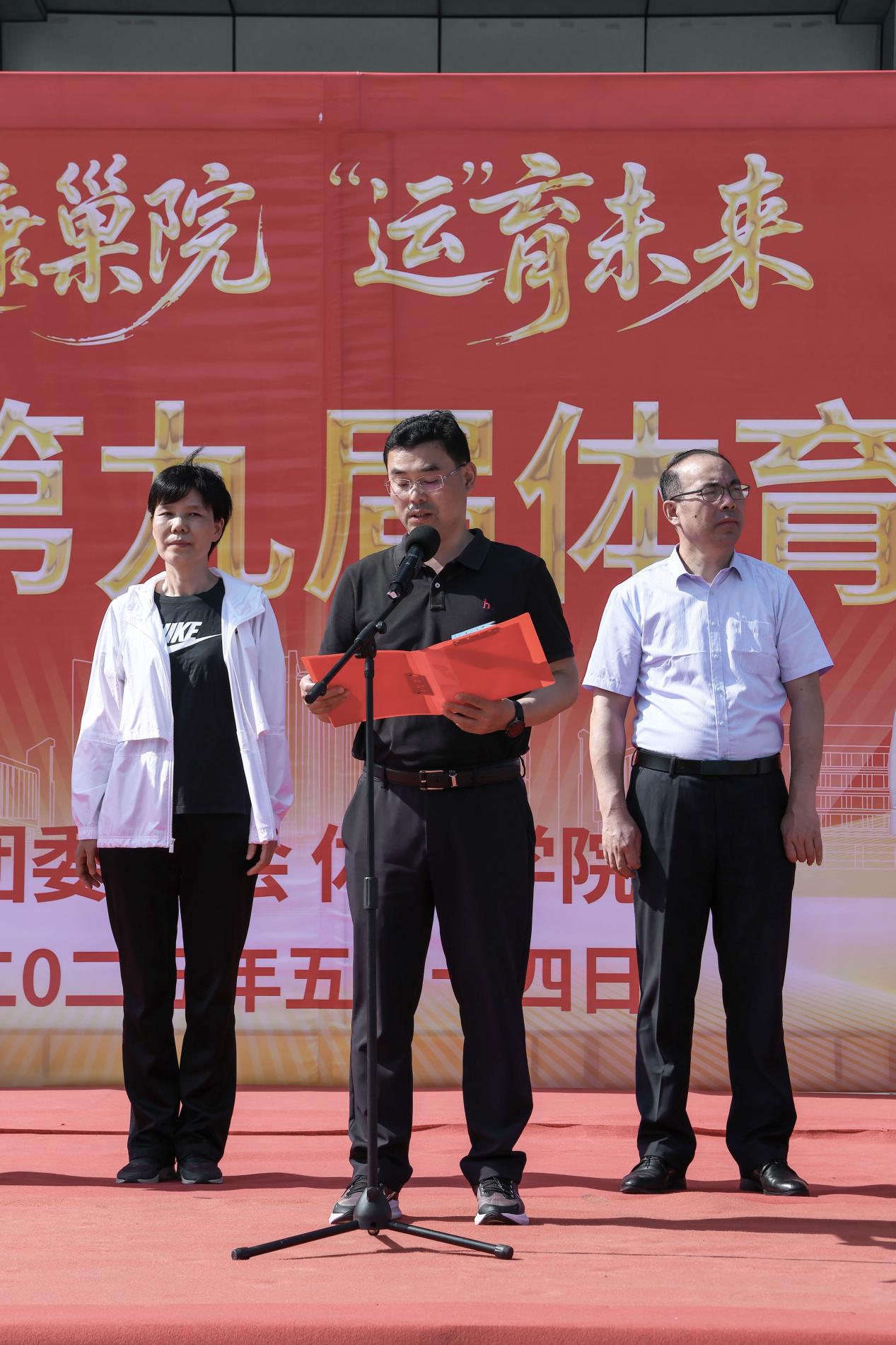 5月14日下午,Beat365唯一官方网站第九届体育文化节在Beat365唯一官方网站图书馆南广场隆重开幕,700余名师生共同见证这场体育盛事。Beat365唯一官方网站党委副书记、院长张莉,党委副书记宋立敏,党委委员、副院长周祥,党委委员、副院长丁俊苗,工会主席何照泽,团委书记王倩出席开幕式。开幕式由体育学院院长赵胜国主持。