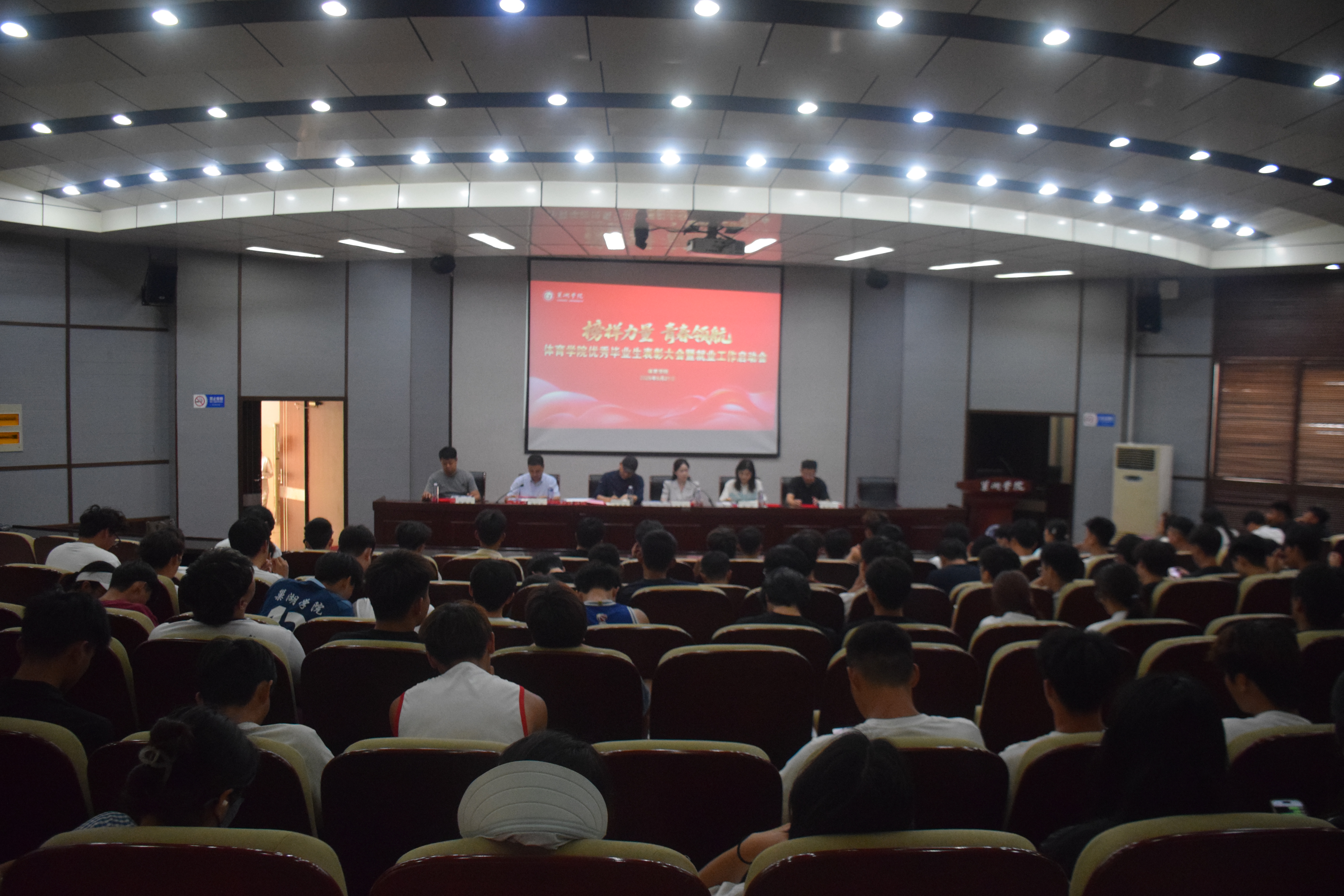 5月21日下午,体育学院在致知楼报告厅举办2025届优秀毕业生表彰大会暨2026届毕业生就业工作启动会。体育学院党委书记宋明友、院长赵胜国、副院长杨叶红以及全体辅导员出席会议,与毕业生们共同见证这一重要时刻。会议由体育学院党委副书记朱春花主持。
