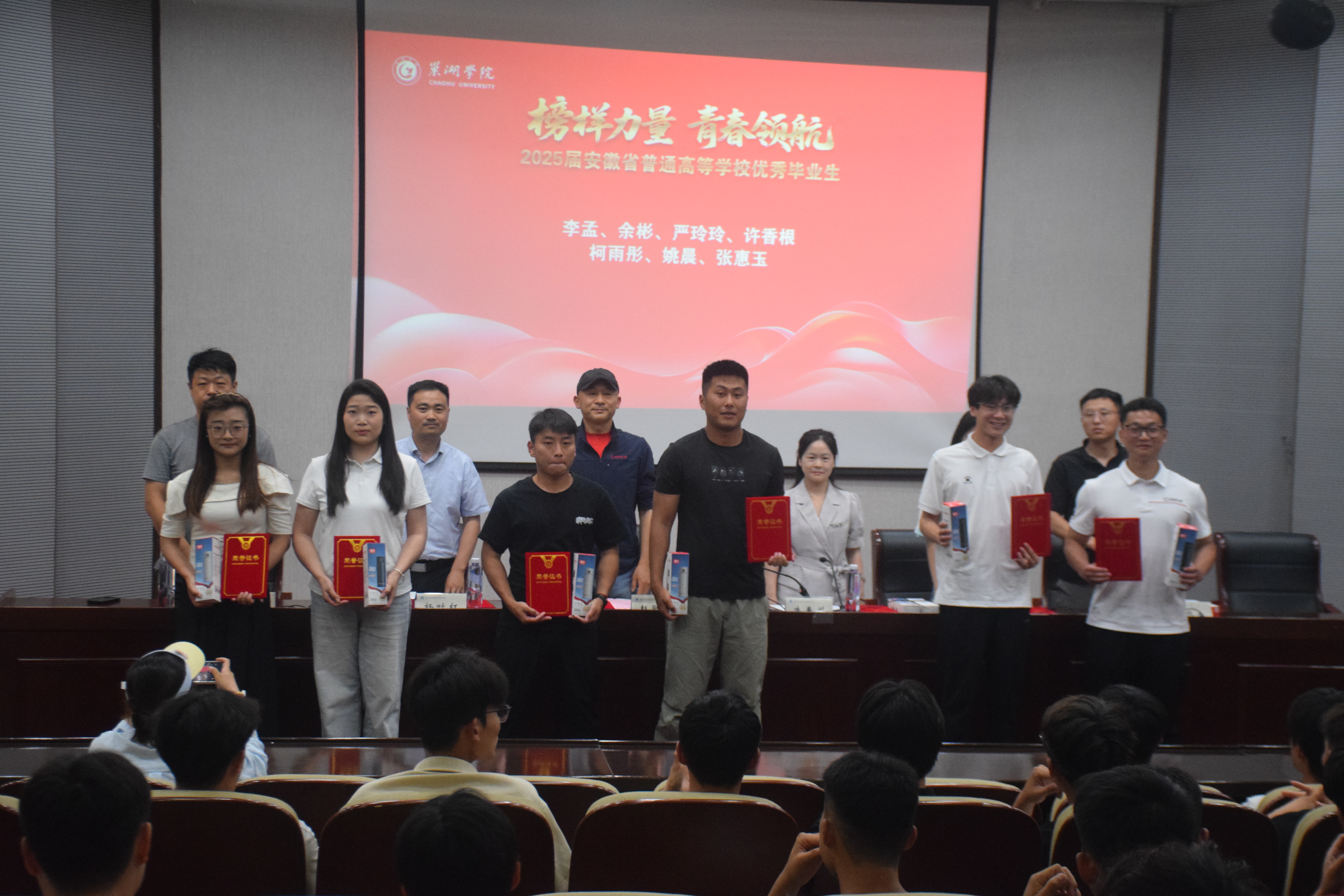 大会在庄严的国歌声中拉开帷幕。赵胜国宣读了2025届安徽省普通高等学校优秀毕业生表彰文件,杨叶红宣读了2025届Beat365唯一官方网站优秀毕业生表彰文件。与会领导老师为优秀毕业生颁发了荣誉证书,向高质量就业毕业生赠送了毕业纪念品,现场气氛热烈,掌声不断。
