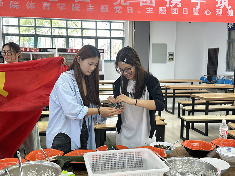为传承中华优秀传统文化,加强学生党员、团员思想政治教育,增强党团建设,关注学生心理健康,5月29日,体育学院在第二食堂开展了“粽叶飘香润心田 党团携手筑心桥”心理健康月主题教育活动。体育学院辅导员田中正、学生党支部全体党员、部分团员代表参加活动,共同度过了一段充实而有意义的时光。
