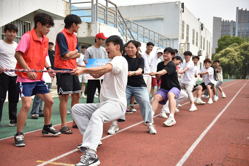 经过赛前广泛动员,本次比赛吸引了11个学院18支队伍共189名学生参赛。开幕式上,主持人热情洋溢地介绍了参赛队伍及比赛规则。随着裁判的哨声响起,比赛正式拉开了序幕,各参赛队伍迅速进入状态,队员们紧握拔河绳,身体后倾,齐心协力用力拉扯。他们满脸坚毅,汗水浸湿额头,却丝毫不减拼搏的劲头。裁判员们也分外认真,积极维护现场秩序,确保比赛在安全的情况下进行。场边的观众也都热情高涨,加油声、呐喊声震耳欲聋,将比赛氛围一次次推向高潮。