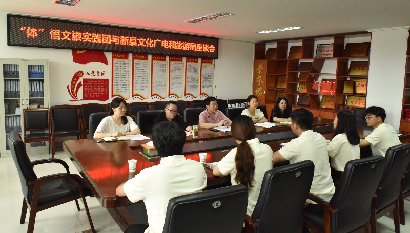 与新县文化广电和旅游局的座谈会处处弥漫着思维碰撞的火花。局长王巍展开“红绿古”三色发展蓝图:“十年建成健身步道218公里,红色体育设施覆盖12乡镇。”他特别强调,新县2024年接待游客1398万人次,其中红色旅游占比92.5%,体育正成为文旅融合新引擎,并补充道:“7月22日,新县将在将军山举行大型影视特技特效红色实景演艺《红旗不倒大别山》,是新县对自身红色文化的自信,也想让更多中国各地的人们看到新县的‘红旗不倒’。”