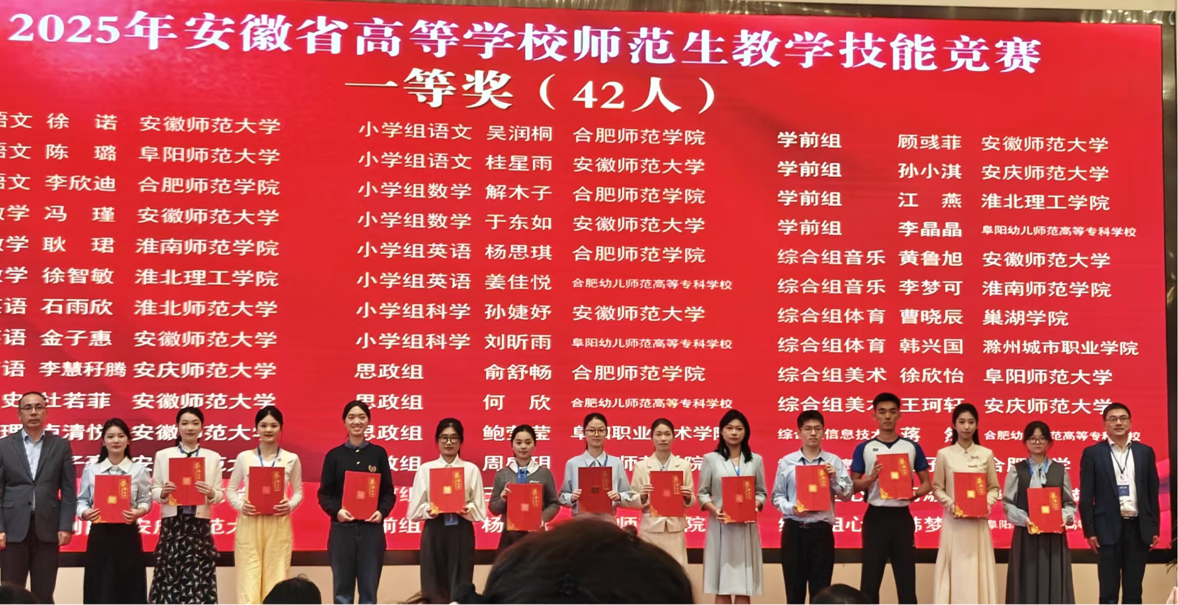 11月2日下午,由安徽省教育厅主办、合肥师范学院承办、安徽省高等院校教师教育合作委员会协办的“2025年安徽省高等学校师范生教学技能大赛”,在合肥师范学院滨湖校区圆满落幕。